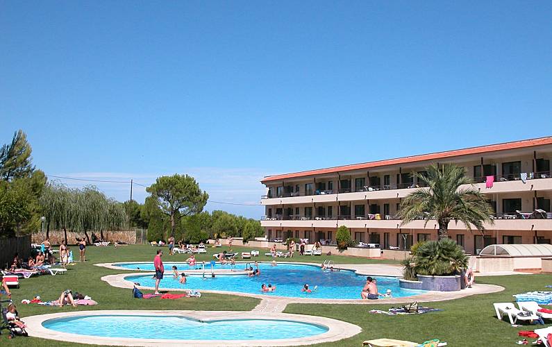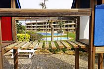 Studios per 2 persone con terrazza con splendida vista sulle montagne. Hanno ascensore e possibilità di parcheggio. Hanno un divano letto matrimoniale e un bagno con vasca. Possibilità di pagare alla reception per asciugamani e biancheria da letto. Hanno una cucina attrezzata e stoviglie. Hanno la televisione satellitare e internet. Hanno tutti i comfort. La spiaggia è molto vicina a 800 m, ha anche un campo da golf a 50m. Hanno una bellissima piscina per adulti e bambini. Hanno anche un giardino e un'area per bambini. Zona molto tranquilla e verde. Coppie ideali, persone che amano il golf e le attività all'aria aperta. Anche per le persone interessate a godersi la spiaggia.