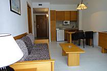 Studios per 4 persone con terrazza con splendida vista sulle montagne. Hanno ascensore e possibilità di parcheggio. Hanno un divano letto matrimoniale e due letti singoli. Hanno un bagno completo con vasca. Possibilità di pagare alla reception per asciugamani e biancheria da letto. Hanno una cucina attrezzata e stoviglie. Hanno la televisione satellitare e internet. Hanno tutti i comfort. La spiaggia è molto vicina a 800 m, ha anche un campo da golf a 50m. Hanno una bellissima piscina per adulti e bambini. Hanno anche un giardino e un'area per bambini. Zona molto tranquilla e verde. Coppie ideali, persone che amano il golf e le attività all'aria aperta. Anche per le persone interessate a godersi la spiaggia.